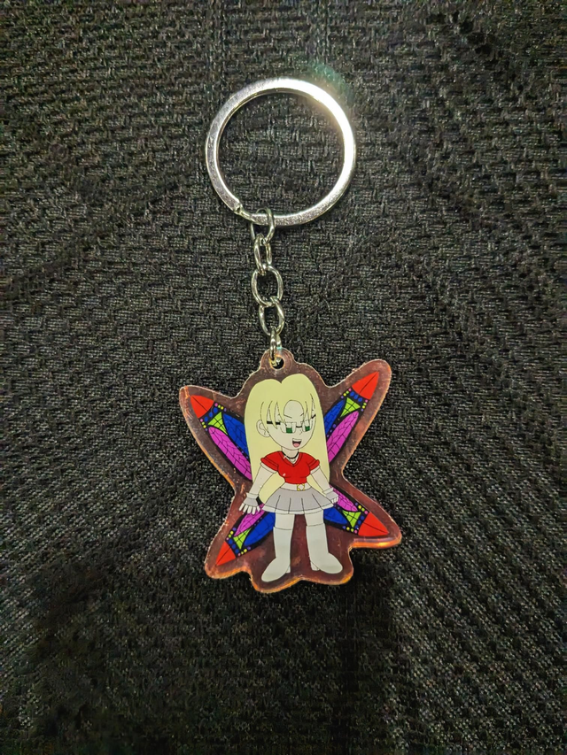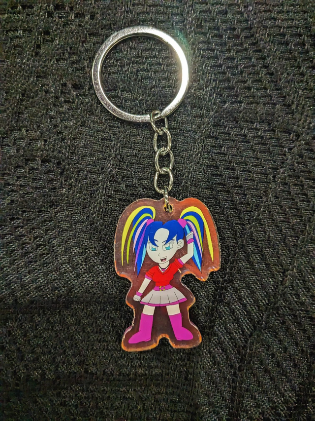 Made with high-quality acrylic materials, this keyring features a chibi design of your chosen Epic Team character printed on a shining holographic background.